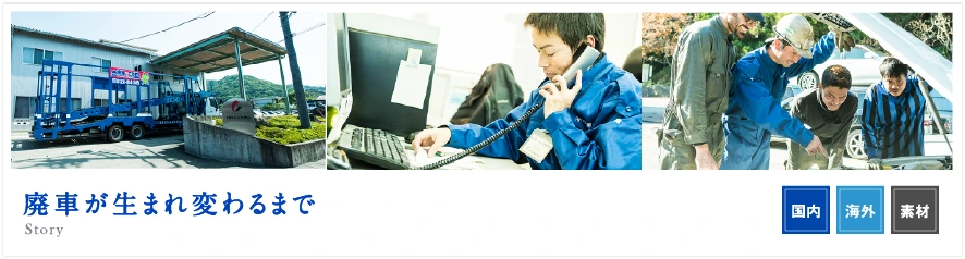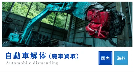 岐阜県岐阜市にある廃車買取・自動車解体・中古部品販売・リサイクルパーツ販売・スクラップ・自動車部品の海外輸出を行う近松商会は、岐阜の地元に根付いて26年。買替えや故障、事故などあらゆる理由により使われなくなった自動車を買取り、確かな知識と経験を持つ専門スタッフにより丁寧に解体、リサイクルパーツとして蘇らせます。岐阜県関市に第2工場を設け、海外輸出用パーツの解体・スクラップ等も行っております。廃車をゴミとしてでなく、価値ある車として買い取らせていただき、リサイクルを通じて地球環境の保全に取り組んでおります。国内で需要のあるパーツは、全国ネットワークを通じて、業者様や個人のお客様へ販売しております。また、その他ホイールや電子部品に含まれる金属など、素材として需要のあるパーツも、海外へ輸出を行っております。動かなくなった自動車、処分に困った自動車の引き取りなら、近松商会にお任せ下さい。対応地域であれば専門車両にてお引き取りに上がります。